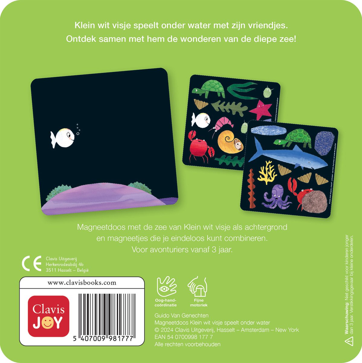 - Magneetdoos met de zee van Klein wit visje als achtergrond en magneetjes die je eindeloos kunt combineren. Voor avonturiers